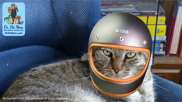 Easy Rider Oscar, styling in his classic motorcycle helmet, for noggin/shayna punim protection, and night-time zoomies around the house…